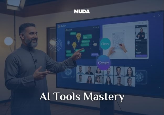 Workshop langsung pakai ChatGPT, Canva AI, dll untuk riset, ide, hingga produksi konten dalam hitungan menit.